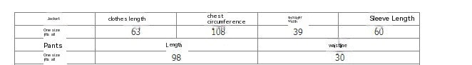 | One size | 63 | 108 | 39 | 60 | 98 | 30 |